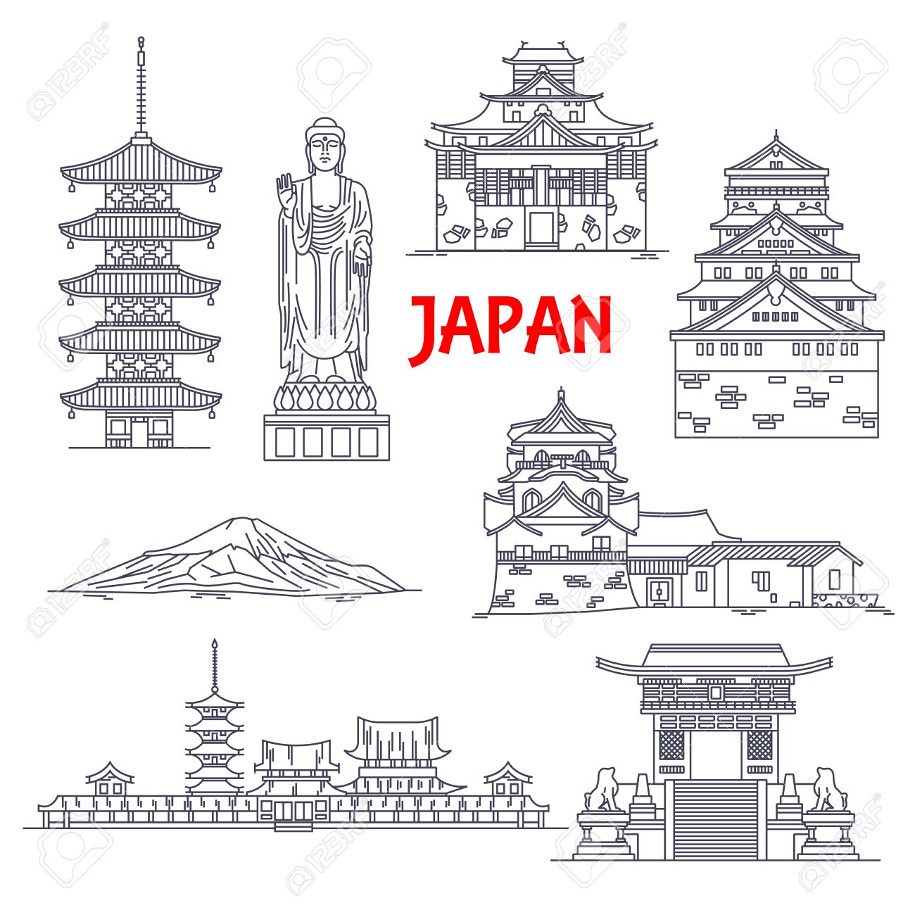 Eight major shrines were built around the foot of the mountain.